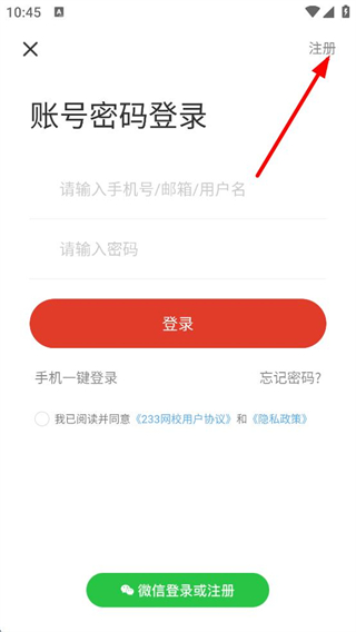 3、在賬號密碼登錄頁面,點擊右上角注冊,進入立即注冊頁面。