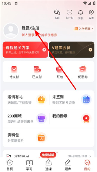 2、在個人中心頁面,點擊登錄/注冊,進入賬號密碼登錄頁面。