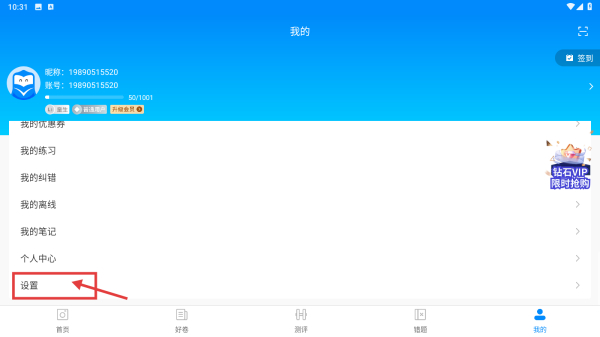 2、在個人中心頁面,點擊設(shè)置選項,進(jìn)入設(shè)置頁面。