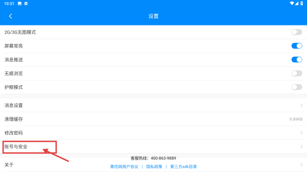 3、在設(shè)置頁面,點擊賬號與安全選項,進(jìn)入賬號與安全頁面。