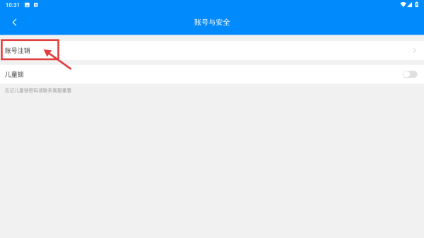 4、在賬號與安全頁面,點擊賬號注銷選項,提交賬號注銷申請。