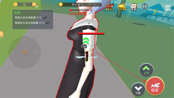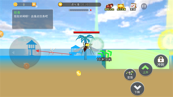 1、操控蚊子在場景中飛行,根據任務提示前往目標區(qū)域,準備執(zhí)行吸血任務。