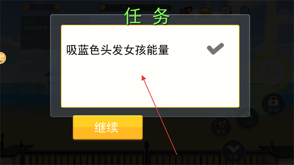 2、接收吸藍色頭發(fā)女孩能量任務,點擊繼續(xù)開始執(zhí)行任務。