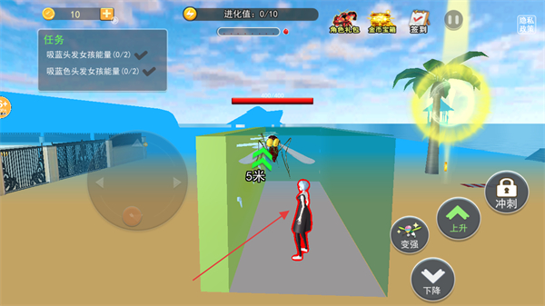 3、找到藍色頭發(fā)女孩,靠近她,準備吸取能量,注意保持飛行穩(wěn)定。