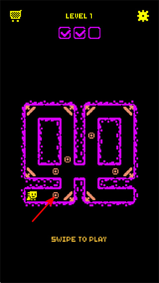4、點擊SWIPE TO PLAY區(qū)域,這是開啟新關(guān)卡的基礎(chǔ)操作,點擊后可進(jìn)入下一關(guān),挑戰(zhàn)更復(fù)雜的迷宮布局。