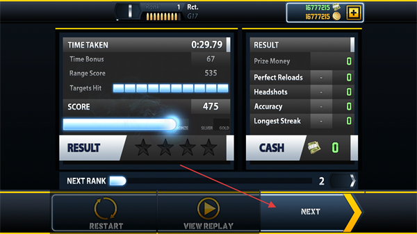 4、完成關(guān)卡后,查看時(shí)間、分?jǐn)?shù)等數(shù)據(jù),點(diǎn)擊NEXT進(jìn)入下一關(guān)。