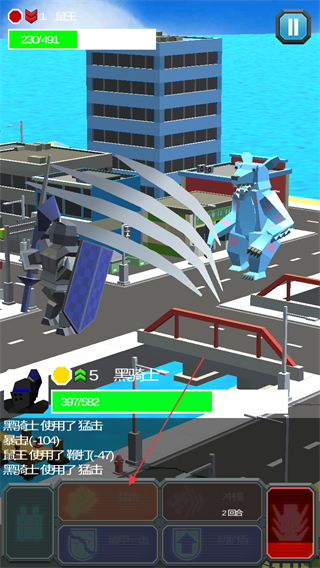 3、下方第一排黃色和紅色的為攻擊技能,可以對(duì)敵方怪獸造成傷害。