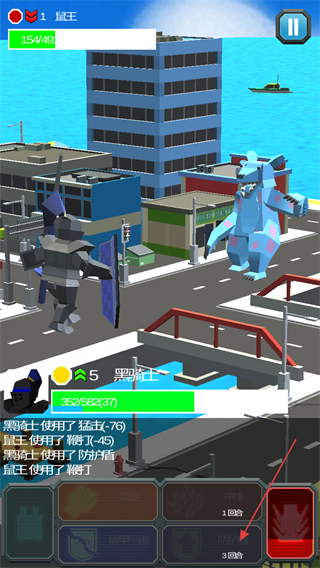 4、時(shí)刻關(guān)注怪獸的血量,利用好下方第二排的藍(lán)色防御按鈕進(jìn)行防守。