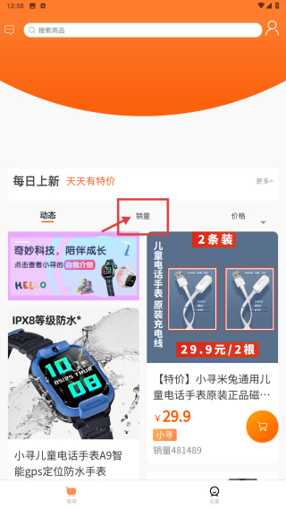 2、在商城頁面,點(diǎn)擊銷量排序選項(xiàng),按銷量瀏覽商品列表。