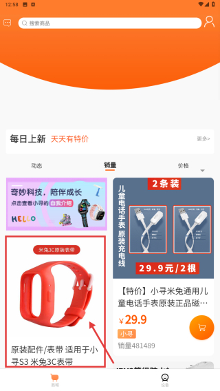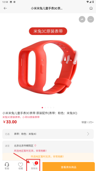 3、在商品列表里,找到原裝配件表帶-適用于小尋S3-米兔3C表帶商品條目,點(diǎn)擊進(jìn)入商品詳情頁。
