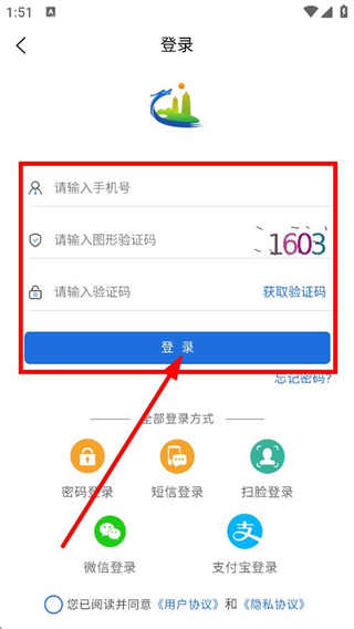 4、輸入手機(jī)號(hào)、圖形驗(yàn)證碼,輸入驗(yàn)證碼后,點(diǎn)擊登錄,完成賬號(hào)登錄。