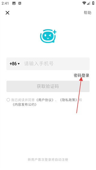 3、在登錄選擇頁(yè)面,點(diǎn)擊密碼登錄可進(jìn)入密碼登錄頁(yè)面。