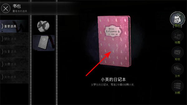 3、查看書(shū)包中的小英的日記本,這是挖掘故事真相的關(guān)鍵步驟,查看后可了解角色過(guò)往,發(fā)現(xiàn)解謎信息。