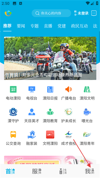 1、打開我的溧陽,點擊頁面右下角我的,可進入個人中心頁面。