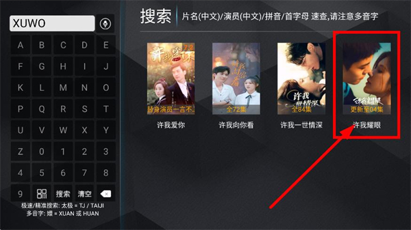 2、在搜索頁面,找到點(diǎn)擊劇集許我耀眼,進(jìn)入劇集詳情頁面。
