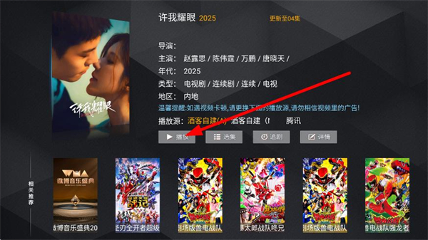 3、在劇集詳情的頁面,點(diǎn)擊播放的按鈕,開始播放該劇情。