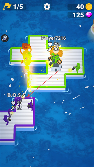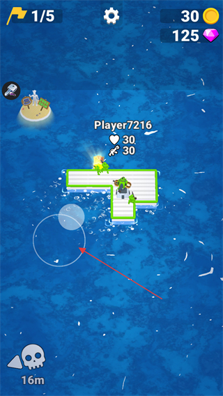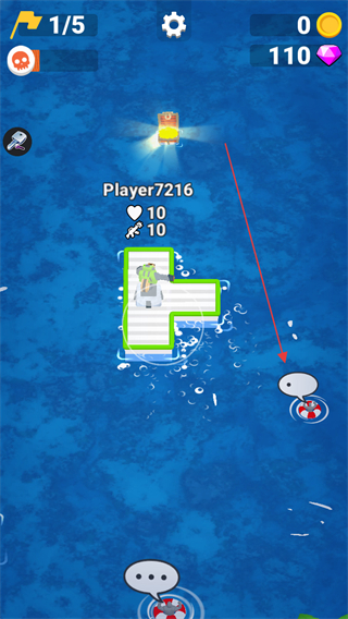 3、操控木筏移動,擴(kuò)大領(lǐng)地,積累金幣和鉆石,升級武器與木筏。