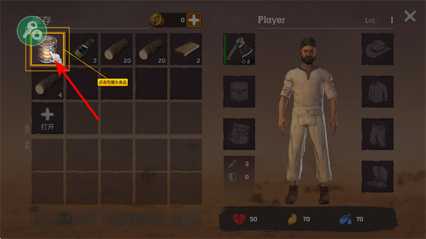 2、使用罐頭食品恢復(fù)狀態(tài),這是保障生存的核心操作,使用后可恢復(fù)生命值、饑餓值等,確保角色能持續(xù)探索。