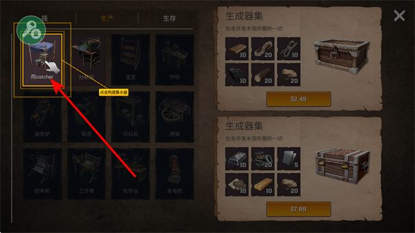 4、解鎖生成器建筑,這是發(fā)展生產(chǎn)的基礎(chǔ)操作,解鎖后可批量獲取資源,為后續(xù)建筑升級和道具制作提供支持。