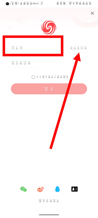 3、在登錄界面,輸入手機(jī)號(hào),點(diǎn)擊獲取驗(yàn)證碼。