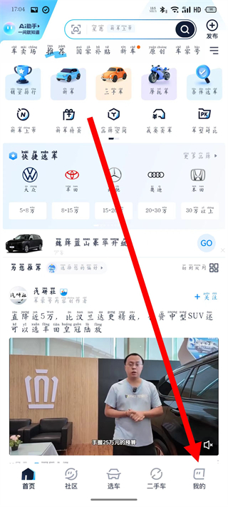 1、打開(kāi)汽車之家,點(diǎn)擊底部導(dǎo)航欄我的,進(jìn)入個(gè)人中心頁(yè)面。