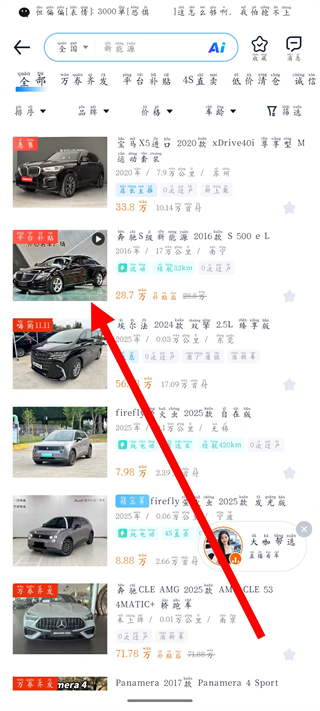 3、在車型列表頁中,點擊感興趣的二手車車型,進入車型詳情頁。