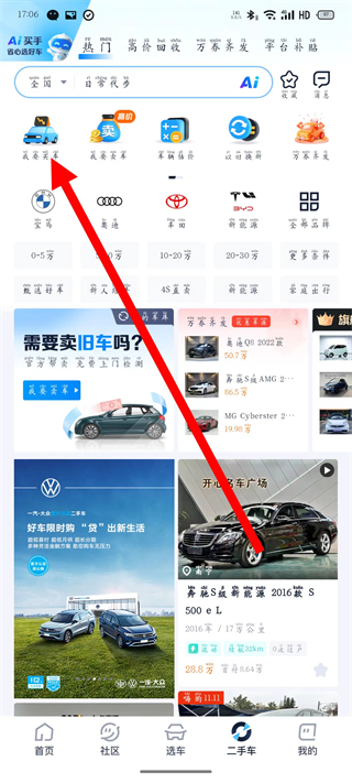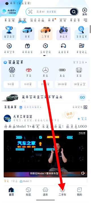 1、打開汽車之家,點擊底部導航欄的二手車,進入二手車頁面。