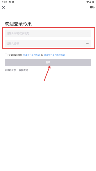 4、在賬號密碼登錄頁面,輸入郵箱或手機號及密碼后點擊登錄,完成密碼登錄操作。