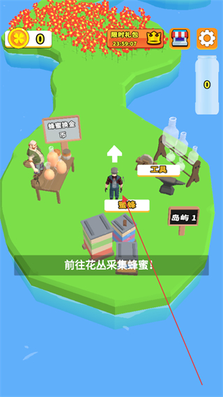 3、采集足夠蜂蜜后,返回蜂箱處,將蜂蜜兌換成金幣,積累財(cái)富。