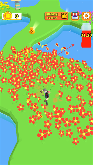 2、在花叢中持續(xù)采集,使蜂蜜瓶容量增加,獲取更多蜂蜜。