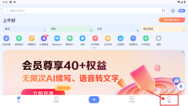 1、打開筆記類應(yīng)用,點擊底部我的選項,進入個人中心頁面。