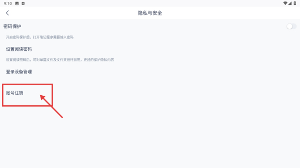 4、在隱私與安全頁面,點擊賬號注銷選項,提交賬號注銷申請。