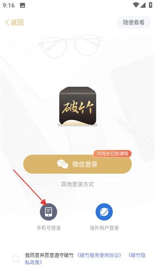 3、在登錄選擇頁面,點(diǎn)擊手機(jī)號(hào)登錄可進(jìn)入手機(jī)號(hào)登錄頁面。