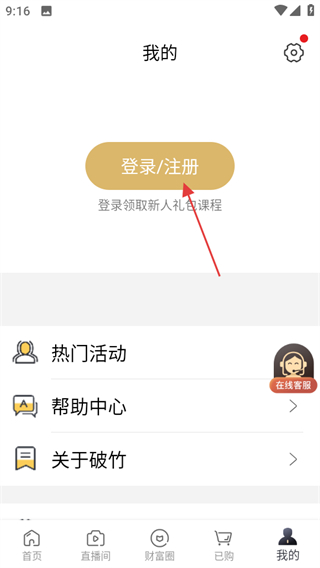 1、打開破竹,點(diǎn)擊頁面右下角我的,可進(jìn)入個(gè)人中心頁面。