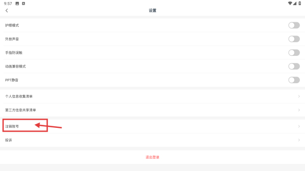 3、在設(shè)置頁面,點(diǎn)擊注銷賬號選項(xiàng),進(jìn)入注銷賬號頁面。