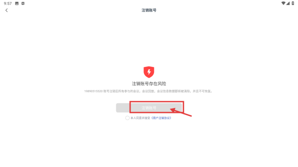 4、在注銷賬號頁面,點(diǎn)擊注銷賬號選項(xiàng),提交賬號注銷申請。
