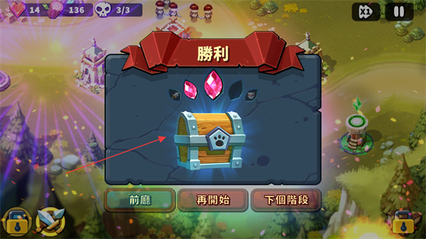4、關(guān)卡通關(guān)后會(huì)根據(jù)據(jù)點(diǎn)血量來(lái)獲取鉆石和寶箱獎(jiǎng)勵(lì)。