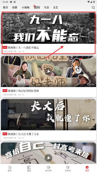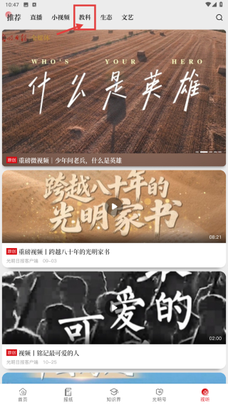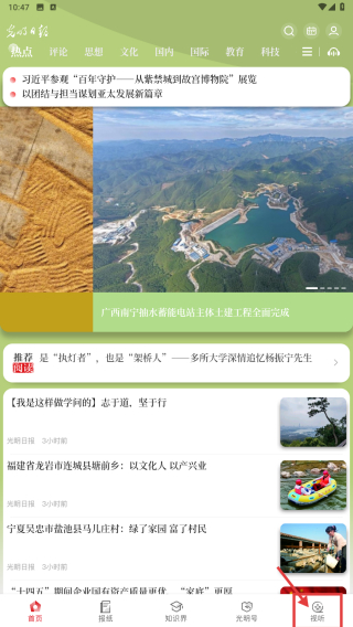 1、打開光明日報應(yīng)用,點擊底部視聽選項,進(jìn)入頁面。