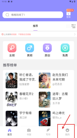 1、打開小說閱讀類應用,點擊底部我的選項,進入個人中心頁面。