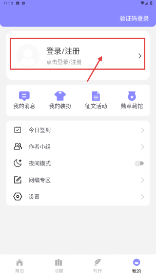 2、在個人中心頁面,點擊登錄/注冊選項,進入登錄界面。
