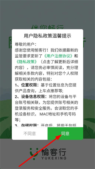 1、在用戶隱私政策溫馨提示彈窗中,點(diǎn)擊同意,進(jìn)入首頁(yè)。