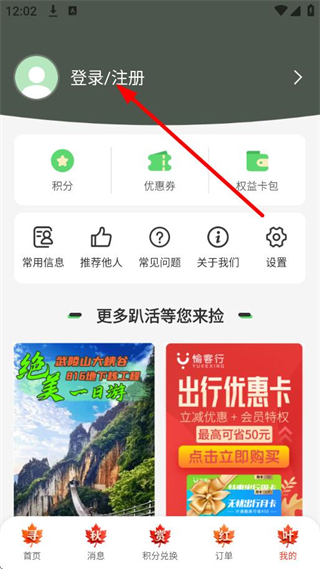 3、在個(gè)人中心頁(yè)面,點(diǎn)擊登錄/注冊(cè),進(jìn)入登錄頁(yè)面。