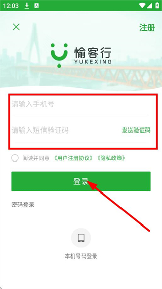 4、在登錄頁(yè)面,輸入手機(jī)號(hào),并獲取短信驗(yàn)證碼,點(diǎn)擊登錄,完成賬號(hào)登錄。