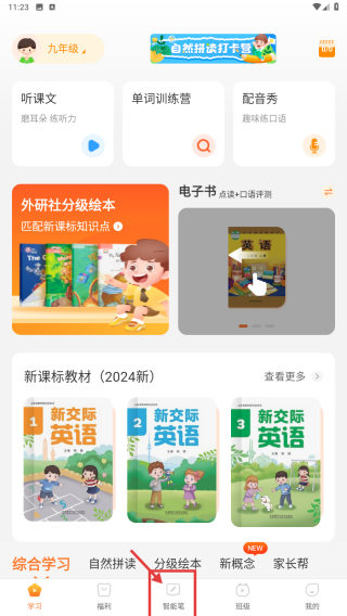1、打開英語學(xué)習(xí)類應(yīng)用,點(diǎn)擊底部智能筆選項(xiàng),進(jìn)入智能筆頁面。