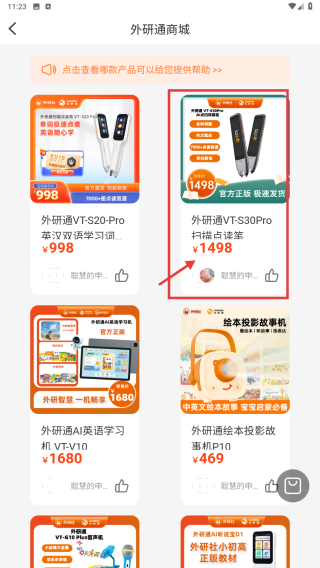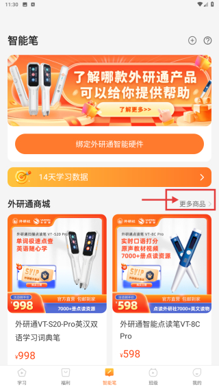 2、在智能筆頁面,點(diǎn)擊更多商品,進(jìn)入外研通商城頁面。