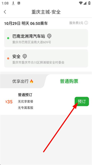 3、隨后我們可以在車次詳情頁面,點(diǎn)擊預(yù)訂,進(jìn)入訂單填寫頁面。