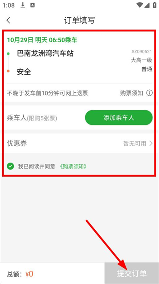 4、在訂單填寫頁面,添加乘車人,點(diǎn)擊提交訂單,完成車票預(yù)訂。