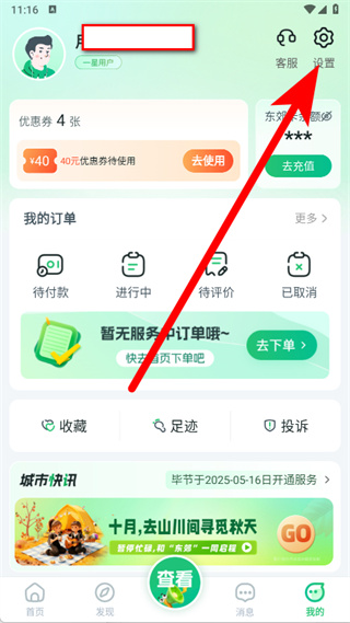 1、打開(kāi)東郊到家,點(diǎn)擊底部導(dǎo)航欄我的,進(jìn)入個(gè)人中心頁(yè)面。