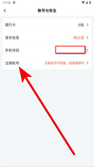 4、在賬號(hào)與安全頁(yè)面,點(diǎn)擊注銷(xiāo)賬號(hào),進(jìn)入注銷(xiāo)賬號(hào)說(shuō)明頁(yè)面。