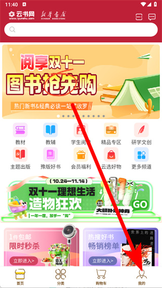 1、打開云書網,點擊底部導航欄我的,進入個人中心頁面。